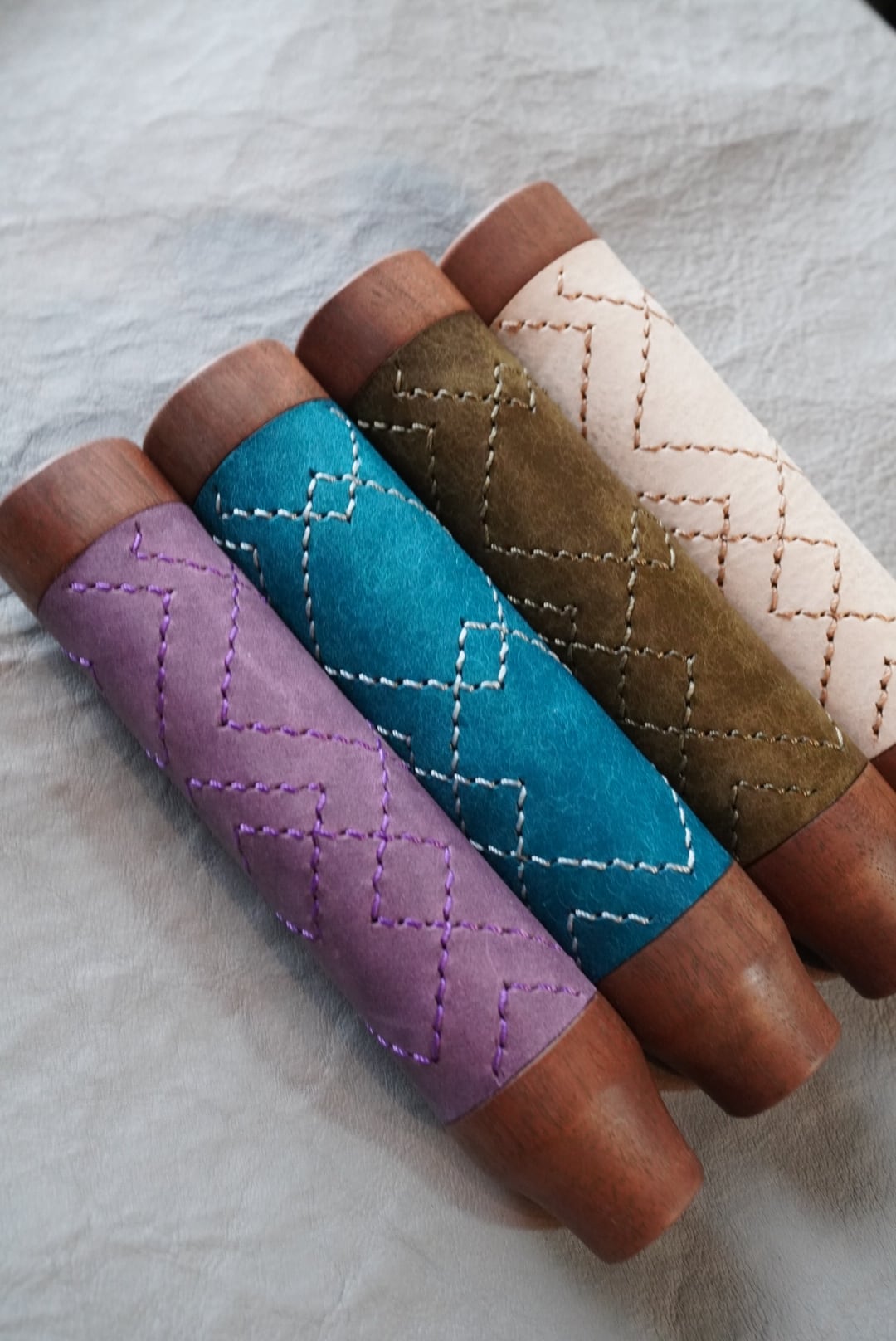 si-uのシカク柄を一針一針手縫いで