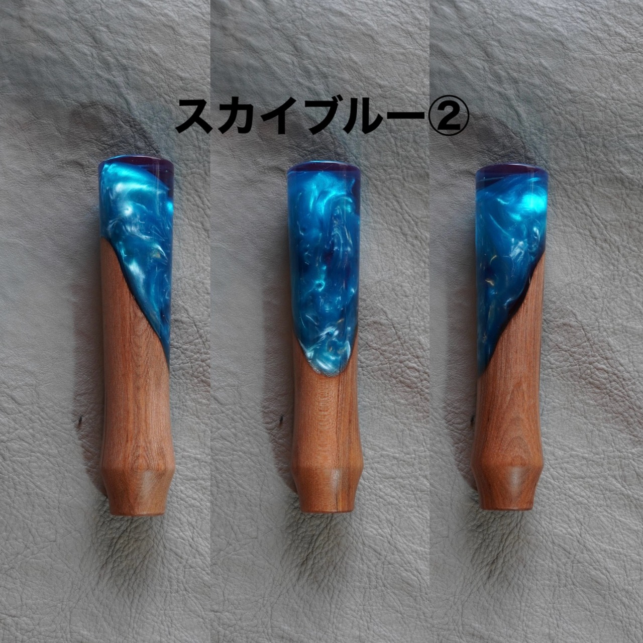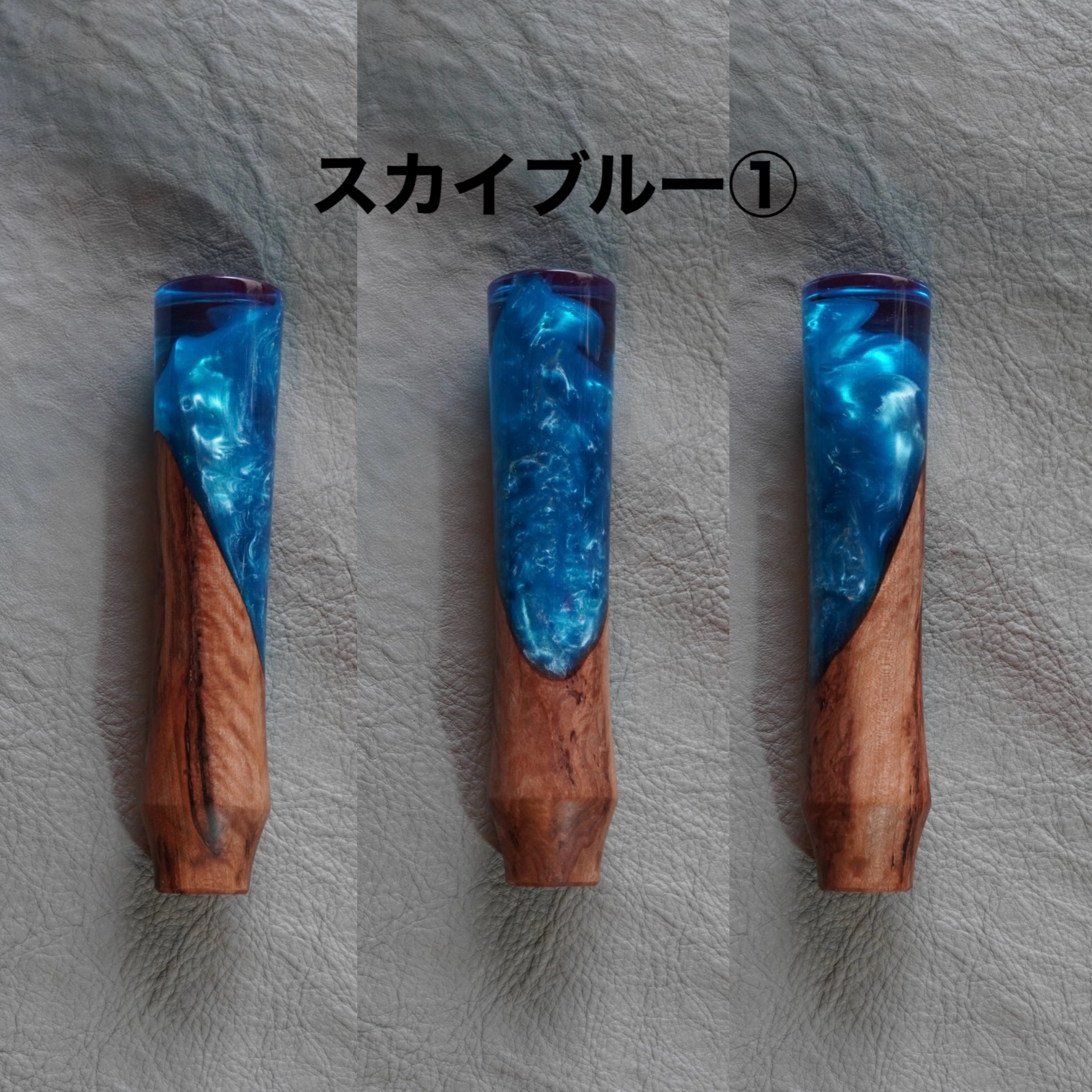 スカイブルー / ブラウンのレジンシフトノブが