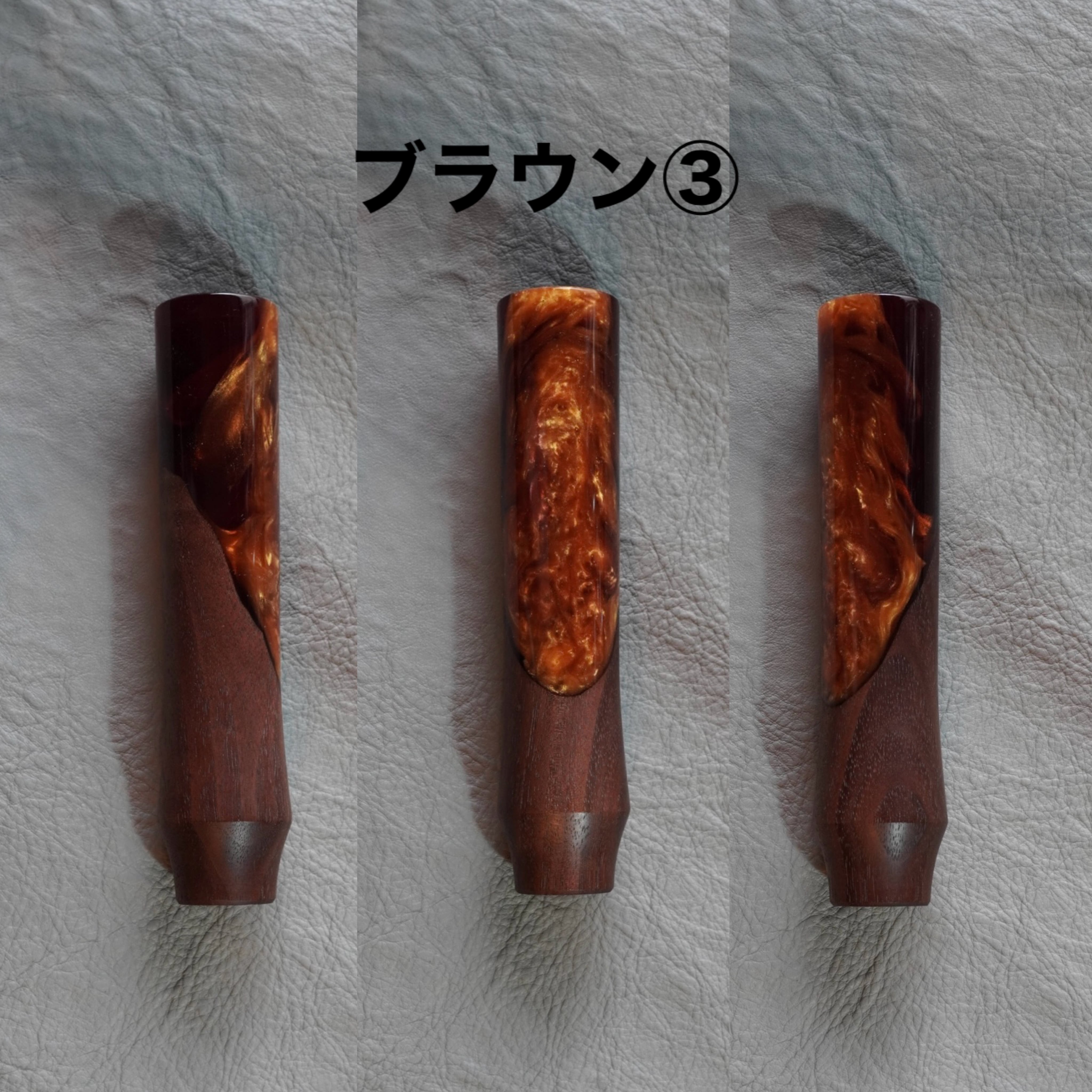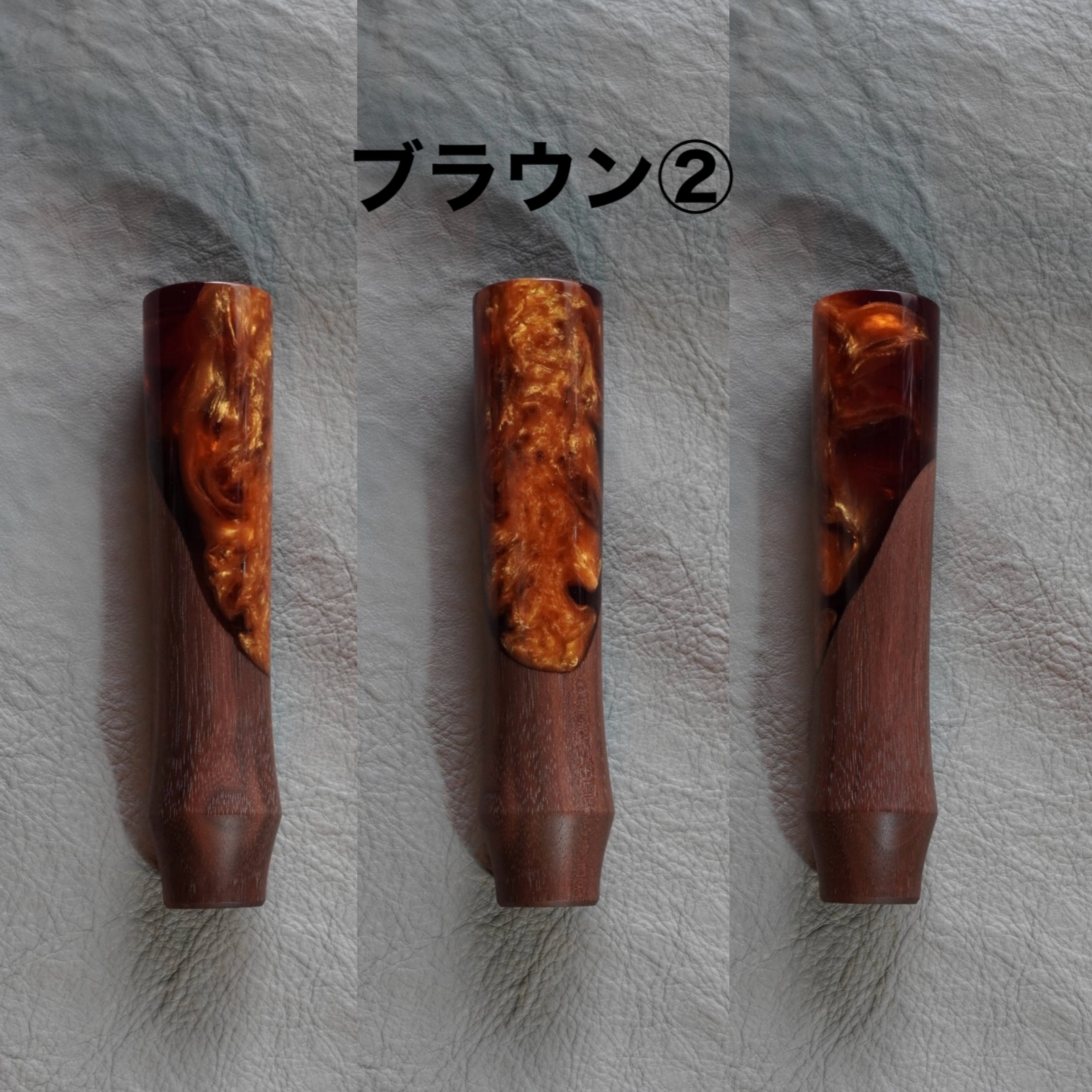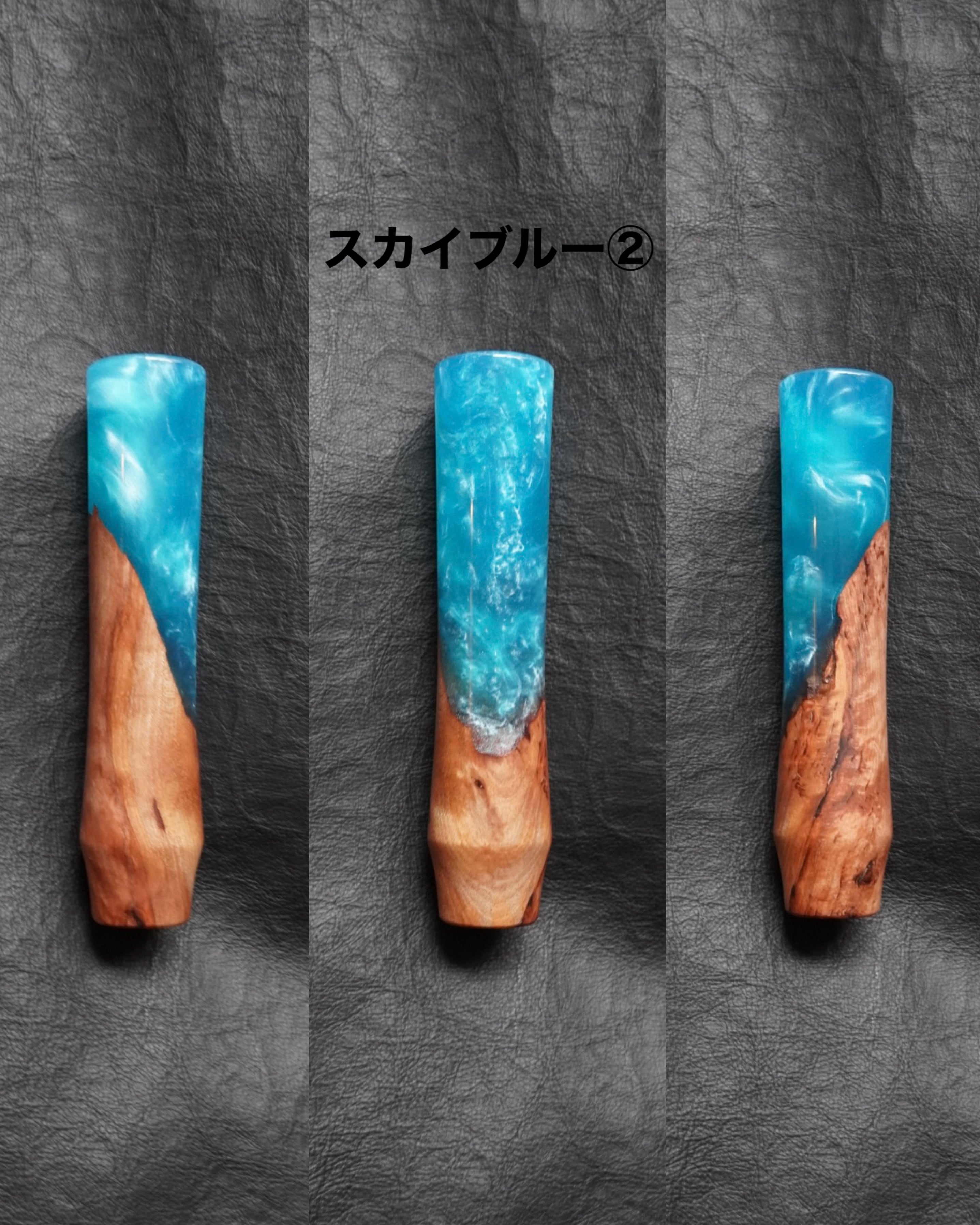深みのある木材とレジンの組み合わせが存在感を放ちます