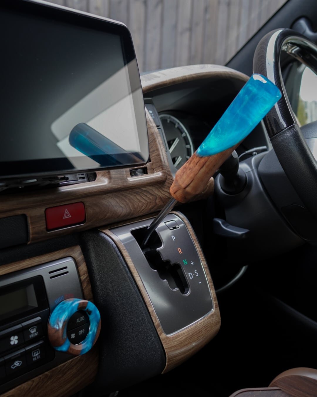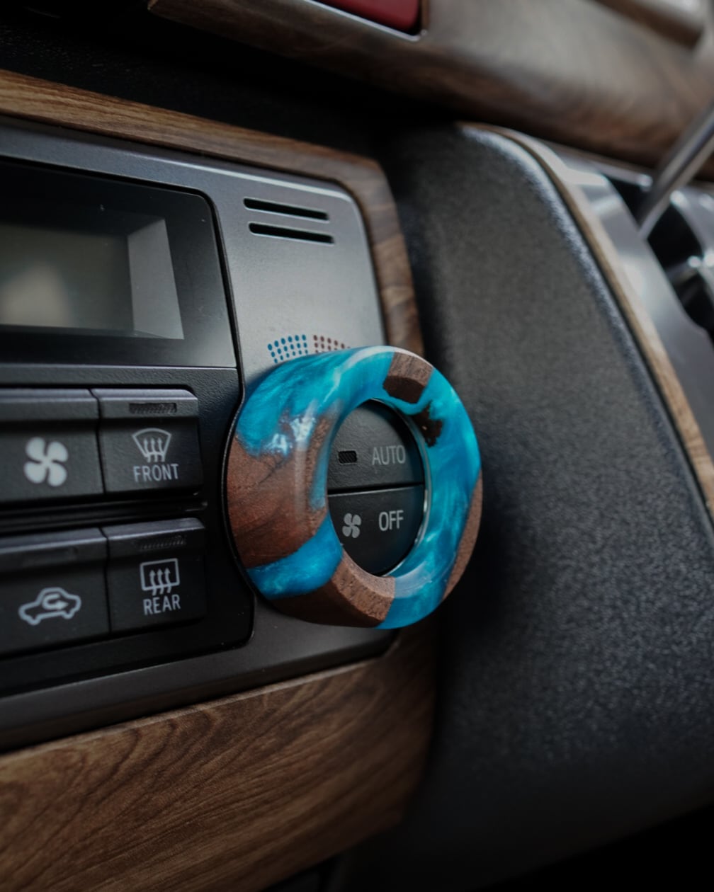 ハイエース専用 エアコンダイヤルカバー レジンVer. スカイブルー|ウォールナット