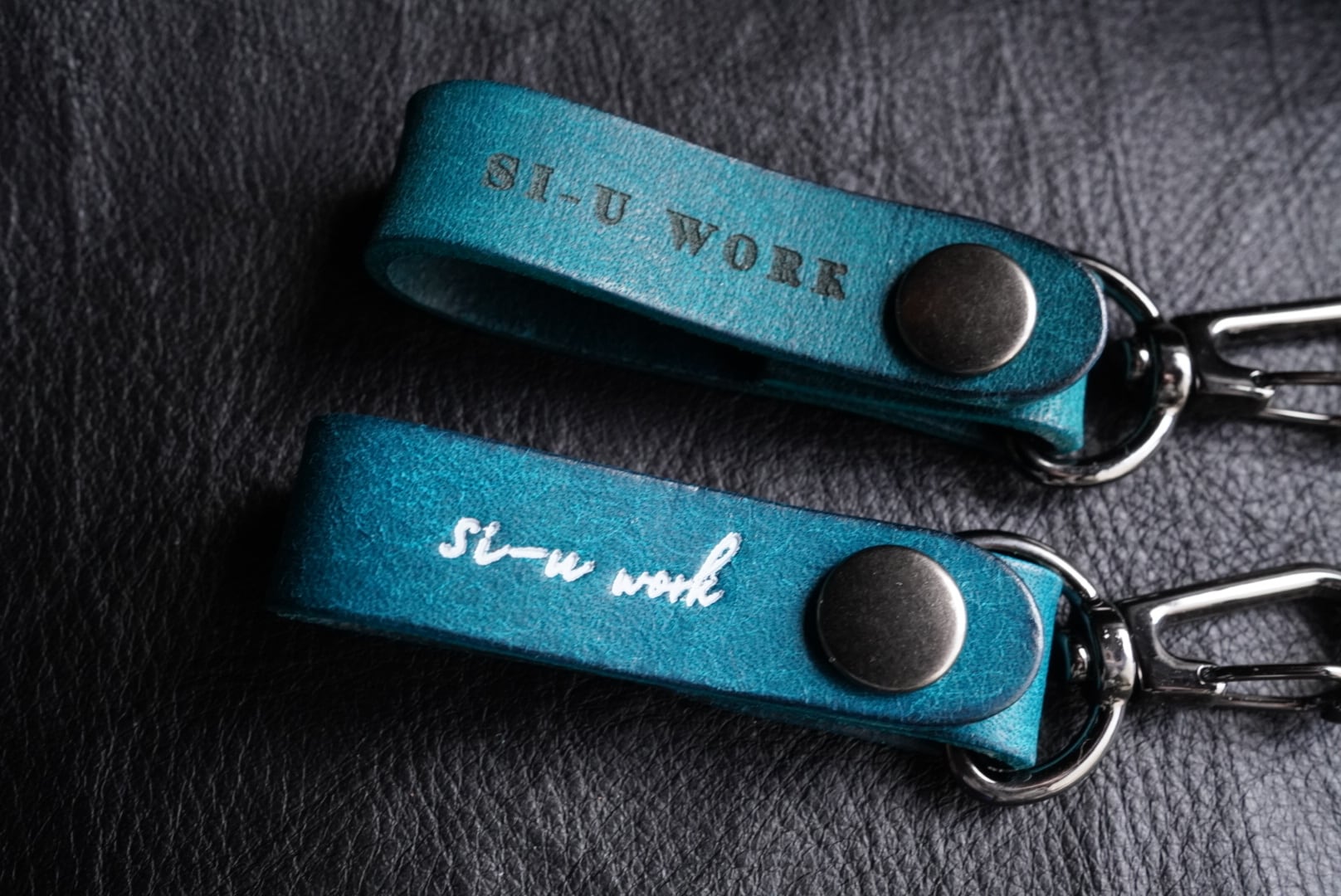 上質なターコイズレザーを使用したシンプルなマルチフック
